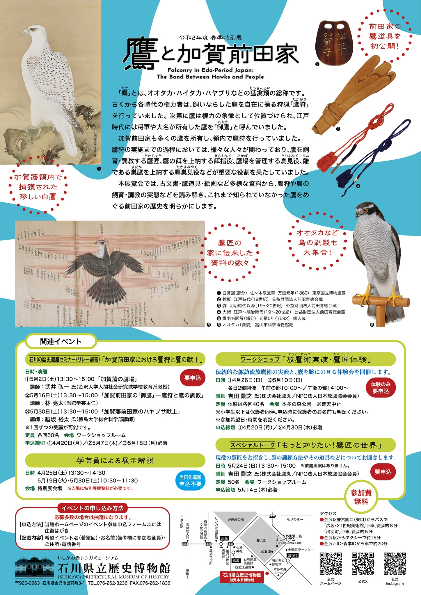 石川県立歴史博物館令和8年度春季特別展「鷹と加賀前田家」