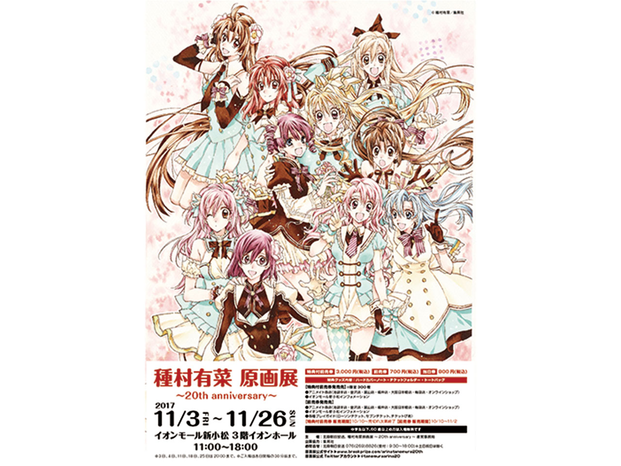 漫画家・種村有菜のデビュー20周年を記念した、史上最大規模の原画展。「神風怪盗ジャンヌ」など、今までの作品から新規描き下ろし作品までを一挙公開。原画展図録やグッズの販売も!