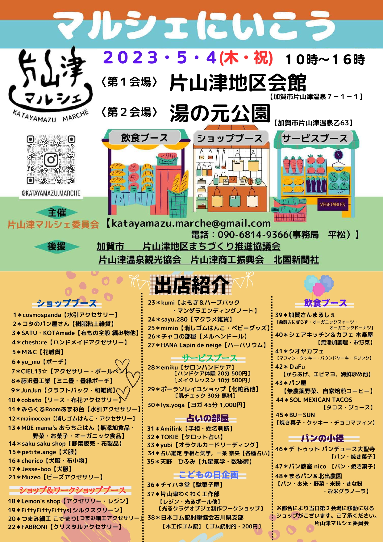 石川県加賀市・片山津温泉のにぎわい創出を目的に地元住民が立ち上げたイベント「片山津マルシェ」が5月4日開催されます!