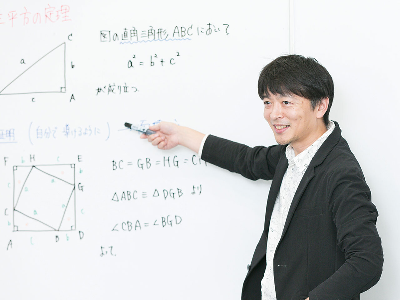 【問題の答え】 ② 【答えの解説・同じような問題への対策】 直角三角形ABCと合同な直角三角形DCAをACとCAを重ねて長方形ABCDを作ります。 QRを伸ばして辺ADと交わる点をS、PRを伸ばして辺DCと交わる点をTとすると、三角形APRと三角形SRA、算数RQCと三角形TCRは合同な直角三角形になります。 したがって正方形PBQRと長方形SRTDの面積は同じになるので3×6=18(㎠) <ここがスゴイ!> ・「数学キライ…」を「数学おもしろい!」に変える塾 ・地域に根差して50年の信頼 ・子どもを通わせたいと思う塾 1973年開校。同塾に通っていた生徒が親になり「子どもを通わせたい」と親子での入塾者がいるほど地域に根差した塾。塾長自ら小1〜高3まで指導することで、講師による教え方の違いをなくし理解力向上に努めている。特に数学は「解き方と答え」だけでなく好奇心・活用力など学習面以外からサポート。 ▶ まずは問合せ! TEL.076-263-4222