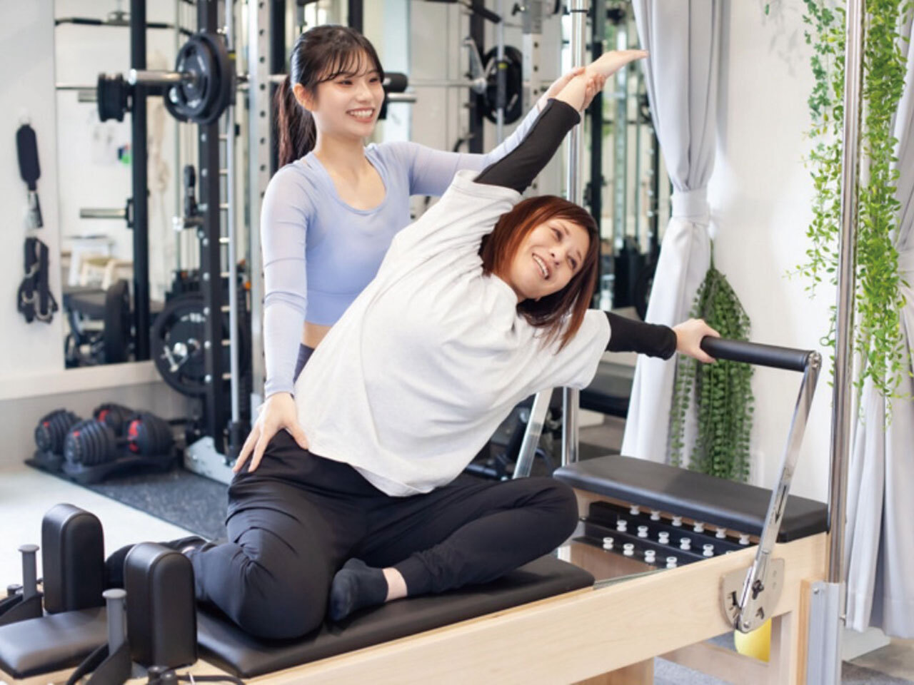 マシンピラティス・筋トレ・ストレッチを組み合わせたオーダーメイドレッスンが受けられる少人数制ジムが、「前向きになれる」 「とにかく楽しい!」と好評! レッスンは1対1or1対4から選択できる!! 有資格者がサポートするので、初心者でも安心♪