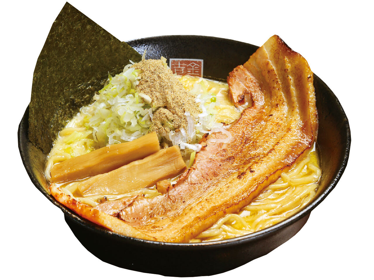 旨味凝縮肩ロース、煮込み豚バラ、炙りバラ肉、半熟玉子、キクラゲ、ネギ等特製トッピングの贅沢仕立て。濃厚で奥深いコクと加賀味噌の旨味が融合した唯一無二の逸品。小上がりもあり子連れに◎。