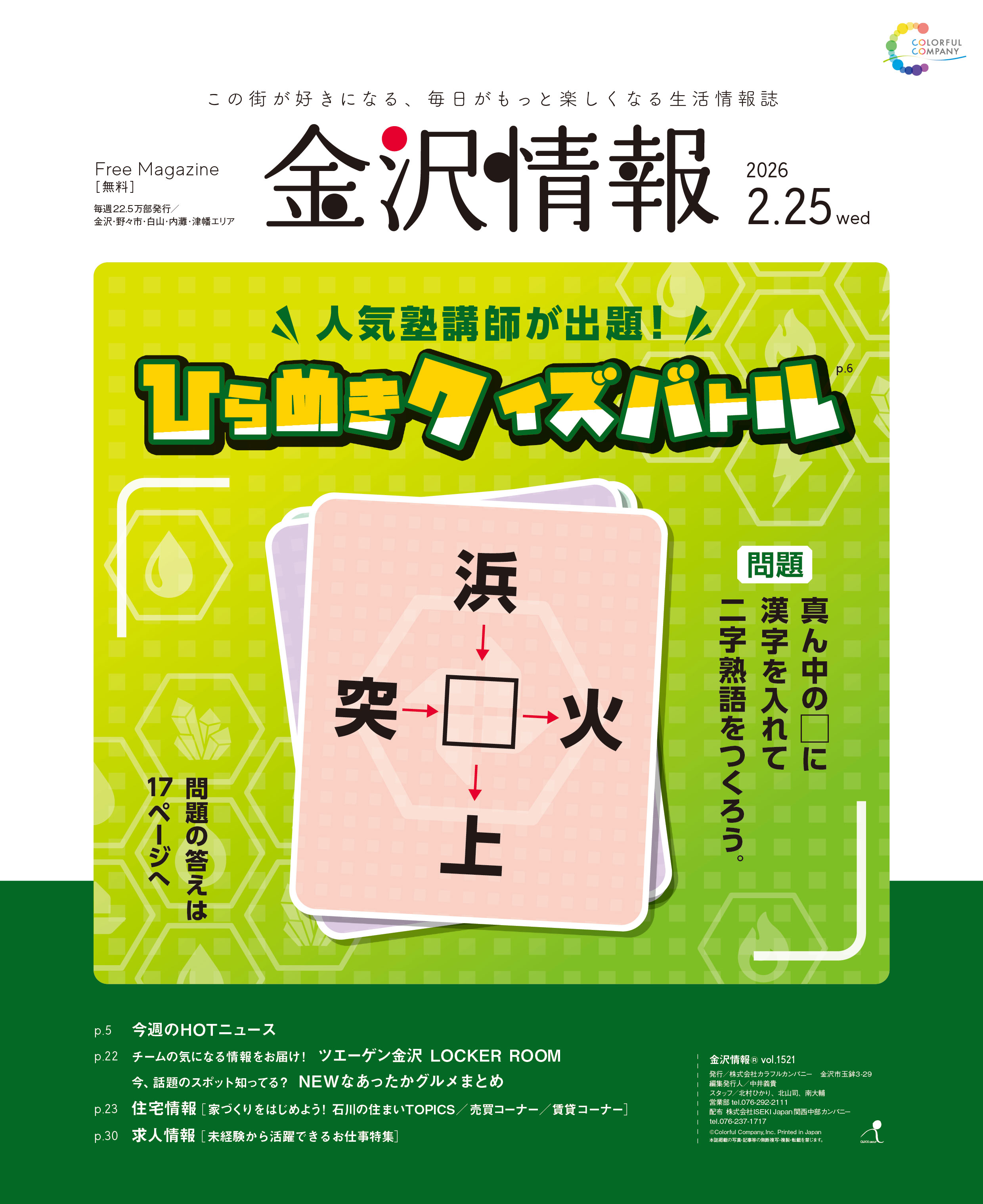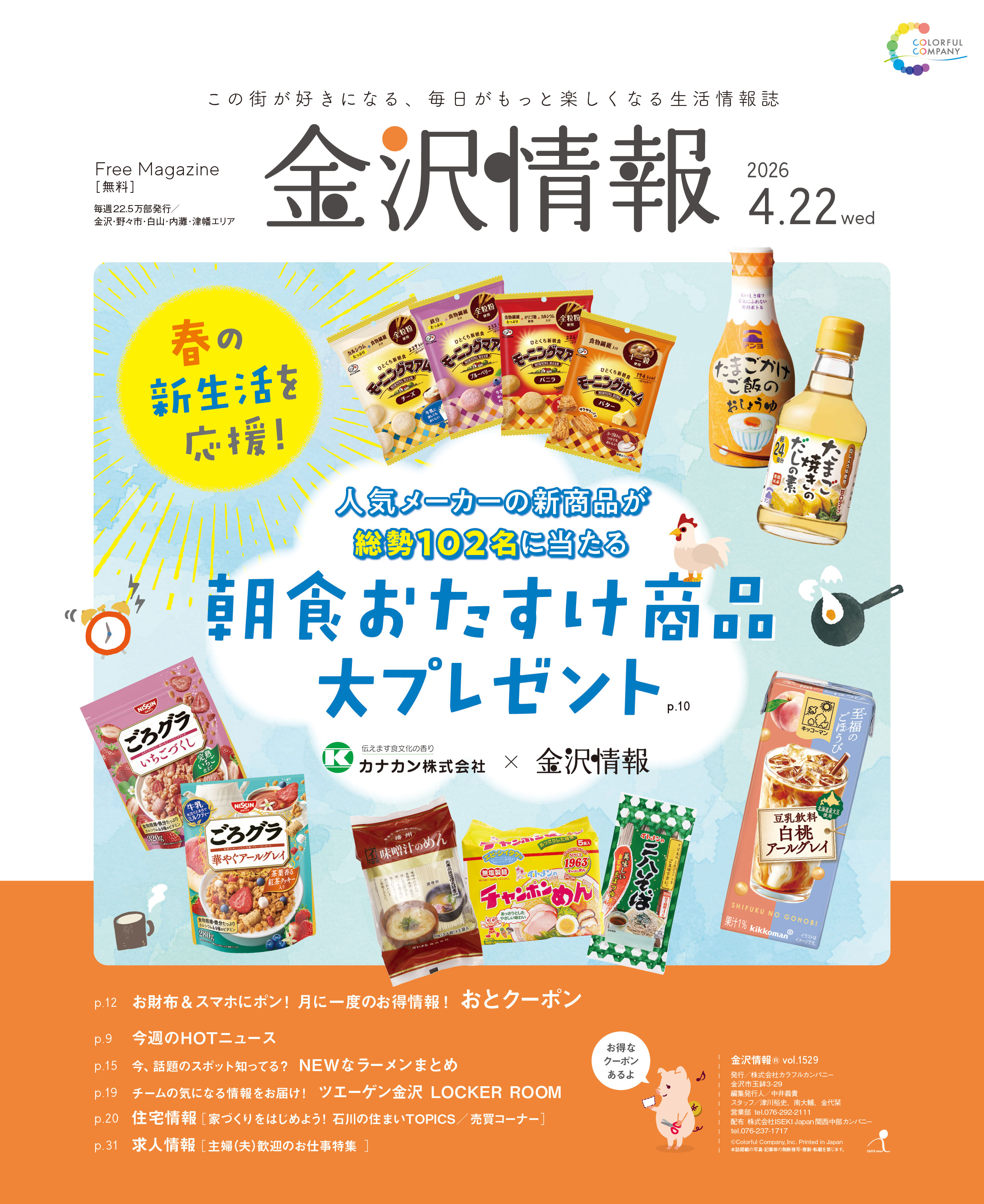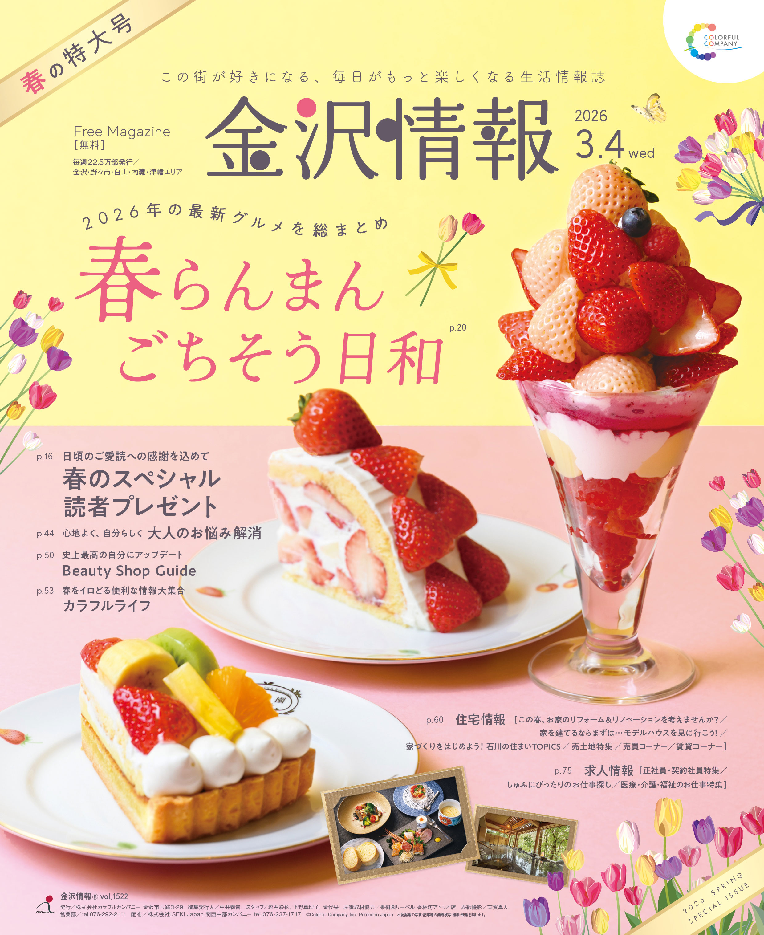 カラフルカンパニーの発行している媒体一覧。フリーマガジン『金沢情報』など、食べる、飲むといった飲食情報はもちろん、その他思わずまちに行きたくなるような情報もりだくさん! 掲載されているお店の一覧や、お得なクーポンを今すぐチェック!