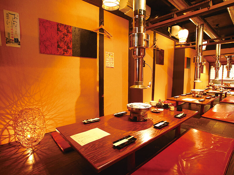 個室の座敷や掘り炬燵席など多数でグループから大人数の団体利用に◎。煙り演出が必見で豪快な「煙のランプステーキ(2,189円)」も人気♪