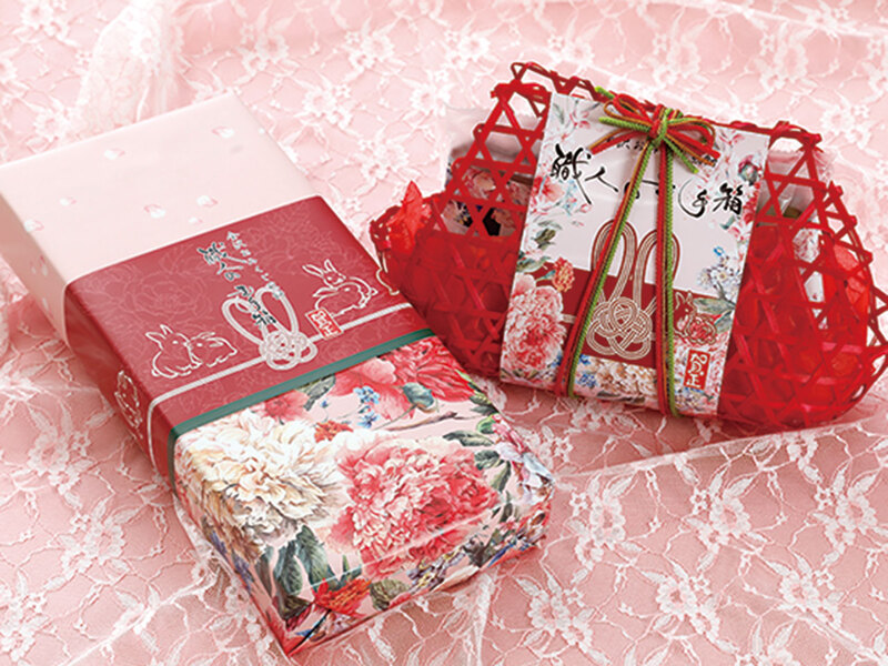 花柄の可愛いパッケージは贈り物や手土産にも喜ばれること間違いなし!! 彦三本店・エムザ店も有。