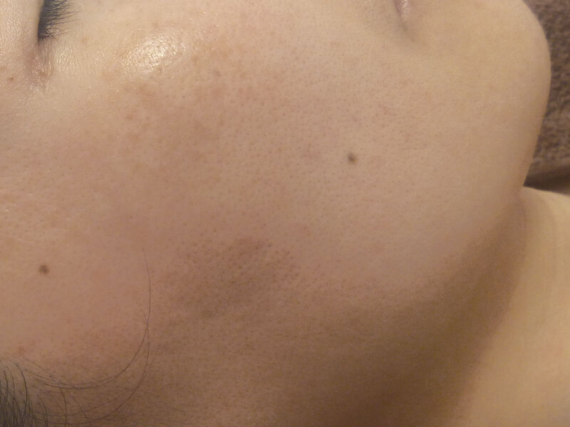 最新機器「リアージュ」を使用し、トリプル低周波パルスでシミを凝縮、3~7日程かけてアカとして排出する!