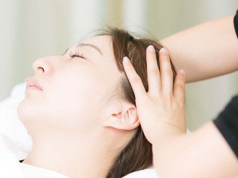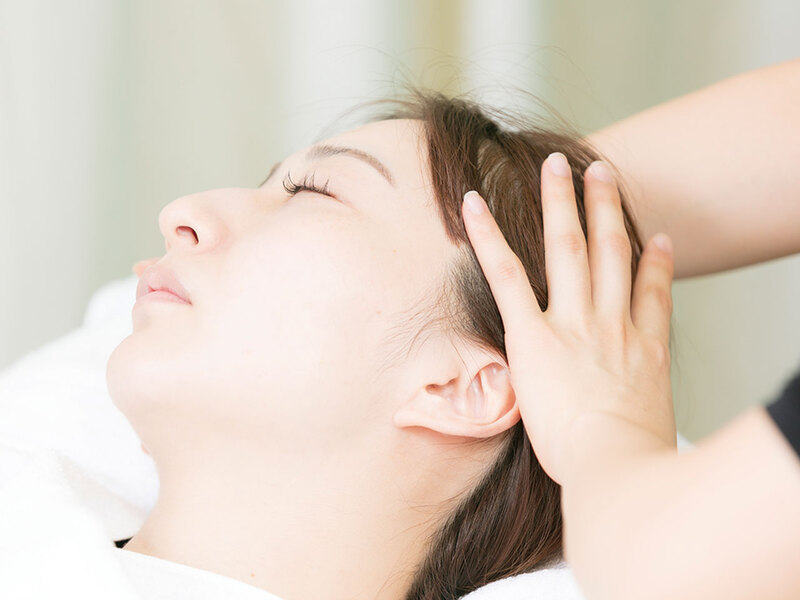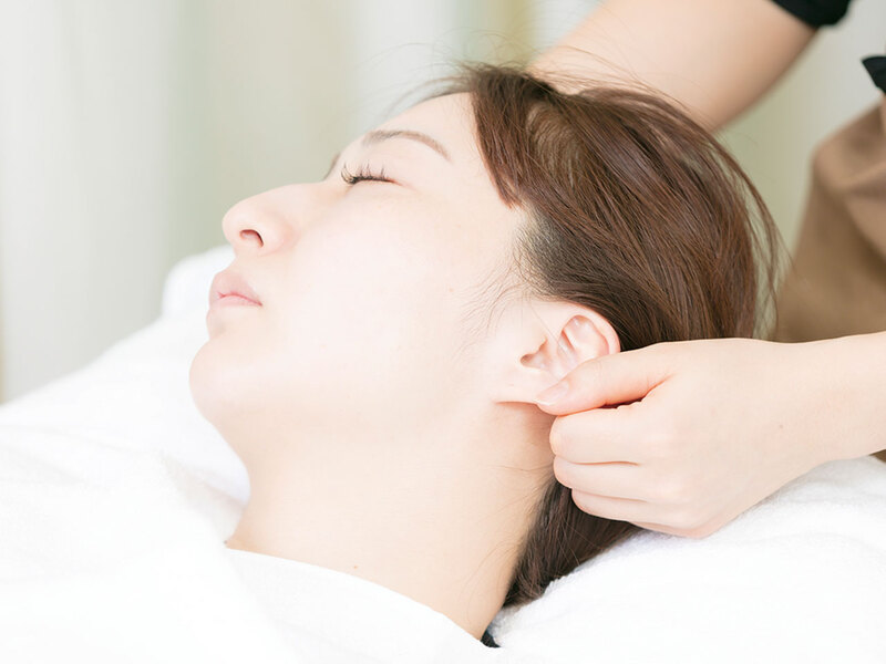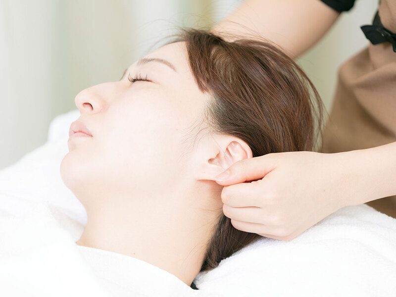 筋膜リフティングではデコルテ・首・肩・顔・耳・頭皮をすべて手技で施術し、顔全体で調和のとれたハリを生み出す。