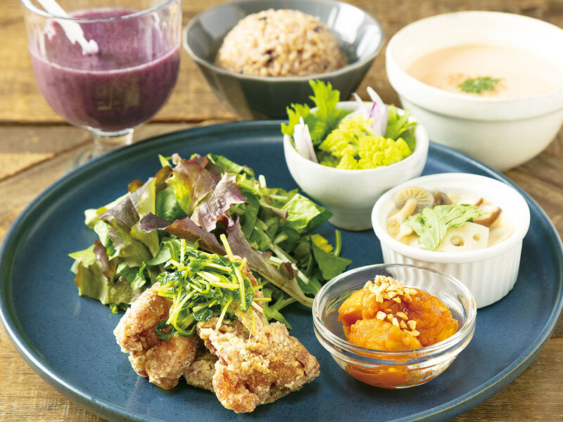 無添加調味料、地場の有機野菜と旬の野菜・食材を使ったランチは健康と美に効果◎!週ごとにおかず、スープが変わるので何度でも楽しめる。