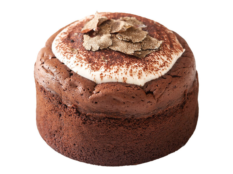 薫り豊かなトリュフを贅沢に使用。生地にも練り込み、ビターなチョコレートと◎。トリュフは時間が経つと縮むことあり。5号サイズは5,940円。