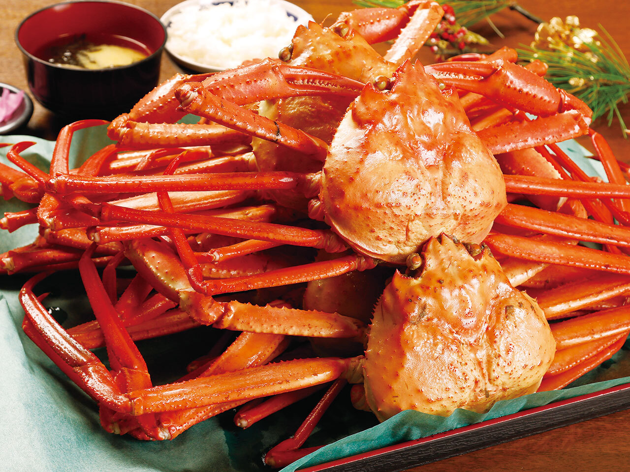 日本海中央に位置する大和堆で水揚げされるベニズワイの中で上等級に値する「紅(くれない)ガニ」のみを茹で立てで提供。