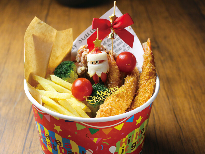 特別なクリスマスは丁寧に手作りした、味良し価格良しの「こよみ」で。特におすすめは、先着200名にプレゼントのかわいいサンタが特徴のクリスマスバーレル!こよみ名物大福から揚げ6個、他大きなエビフライやポテトが入ってなんと2,399円!!