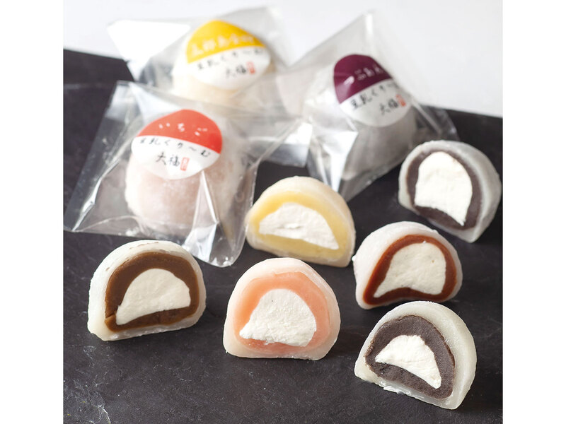 豆乳クリームなので、低カロリーで程よい甘さ♪罪悪感なく楽しめる。6個入(1,620円)は、つぶあん・苺・棒茶・芋・胡麻・チョコと勢揃い!冷凍発送も◎。