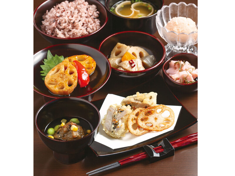 森本駅から徒歩約5分。シーズン毎に変わるれんこん料理の他、旬の野菜を使ったヘルシーなランチを堪能できる。アレルギーなどの要望にも対応可能。