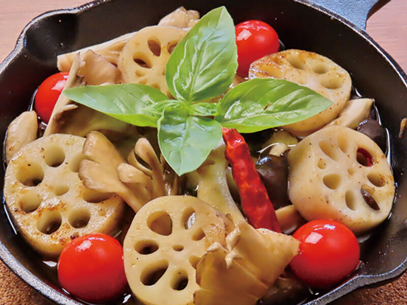 ● 加賀レンコンとキノコのアヒージョ 968円