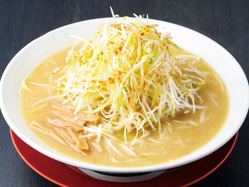 これでもかと盛られたネギがインパクト大! ネギの辛みがラーメンとマッチし、旨さ倍増!! ネギは味ネギ、辛ネギの2種類。スープも味噌、塩、醤油から選べる。