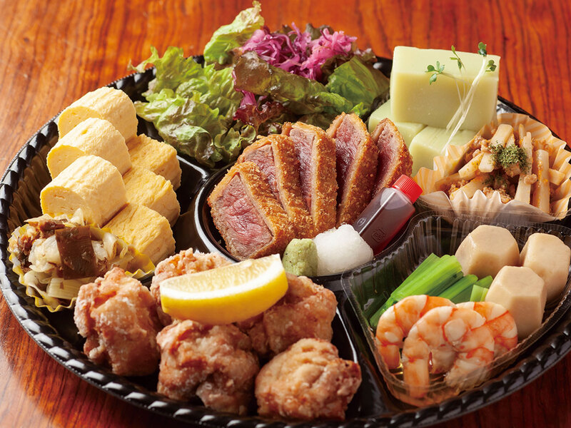 知る人ぞ知る、同店のオードブル。3〜4人前3,600円~で、国産牛ヒレカツ、から揚げ、季節の小鉢3種、出汁巻、サラダ、昆布佃煮と、同店の定番が家で楽しめる!内容のリクエストも可能で、その際は要予約。誕生日や家族の集まり、クリスマス等にぜひ♪