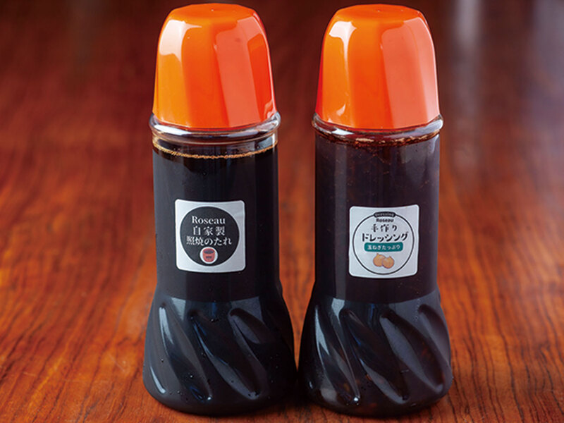 右「オニオンドレッシング(600円)」は、店のサラダを再現できる。左の「照り焼きのタレ(700円)」は、料理にひと手間を加えられる♪