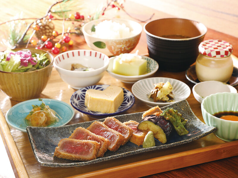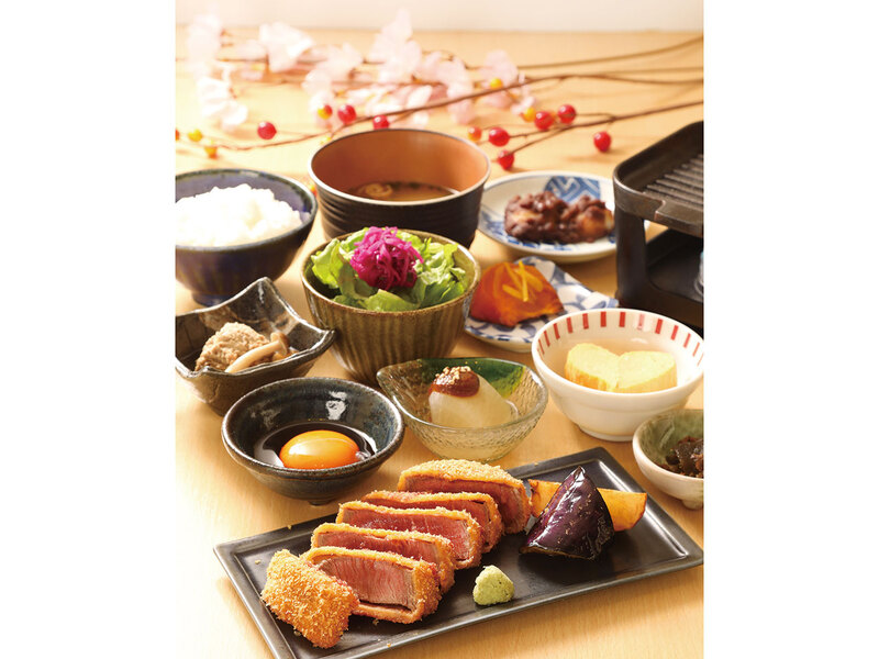 国産牛ヒレカツ御膳/季節の小鉢、季節の椀物、サラダ、香物、汁物、デザートが楽しめる御膳。2,178円
