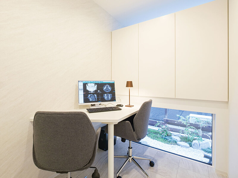 一般診療から自費診療まで幅広い経験を活かし、一人ひとりの悩みに合わせ治療プランを提案。最適な治療法を選んでもらうため、きめ細やかなヒアリング、口の診察、丁寧なカウンセリングを実施。安心の完全個室のカウンセリングルームも◎。