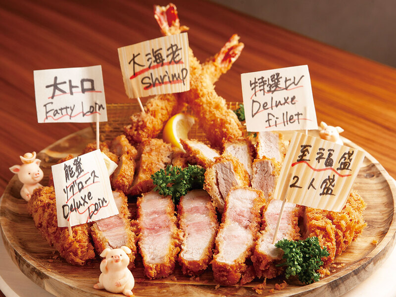 至福盛(6,800円) 2人で楽しむ。能登豚特選リブロース、特選ヒレ、能登豚大トロ、大エビフライ2尾。
