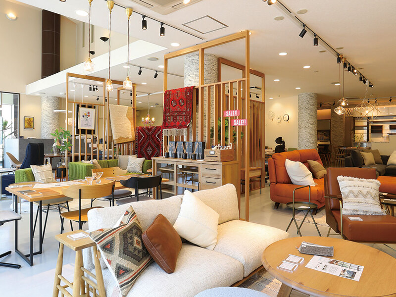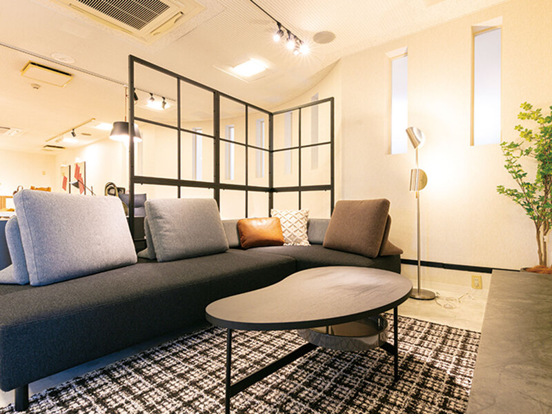 同店は全3階建。1階は、どの家にも馴染みやすいナチュラル家具がコンセプト。2階は、黒を基調としたシンプルモダン。3階は、老舗メーカーから自社ブランドまで、種類豊富に販売中。