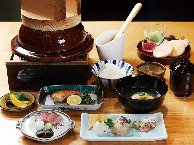 毎日市場にて新鮮で旬な食材を料理長自ら仕入れ、すべての料理を手作りで用意。どの部屋からも眺められる武家庭園「玉泉園」の景色と共にこだわりの会食を。ランチ会席7,700円~(サービス料別。完全予約制)。