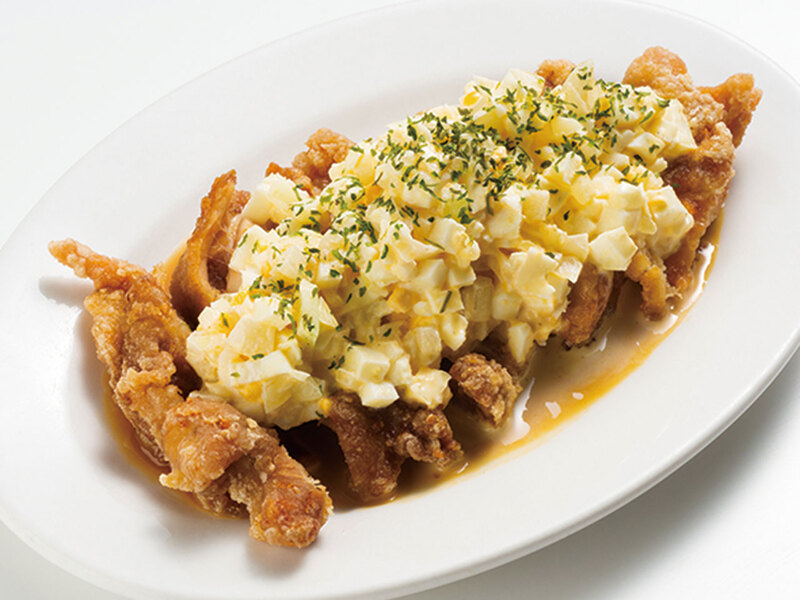カリっとさくさくの鶏肉に、濃厚なタルタルソースとタレが更に肉の旨味を引き立てる人気の一品。