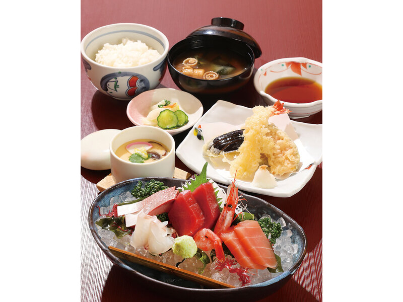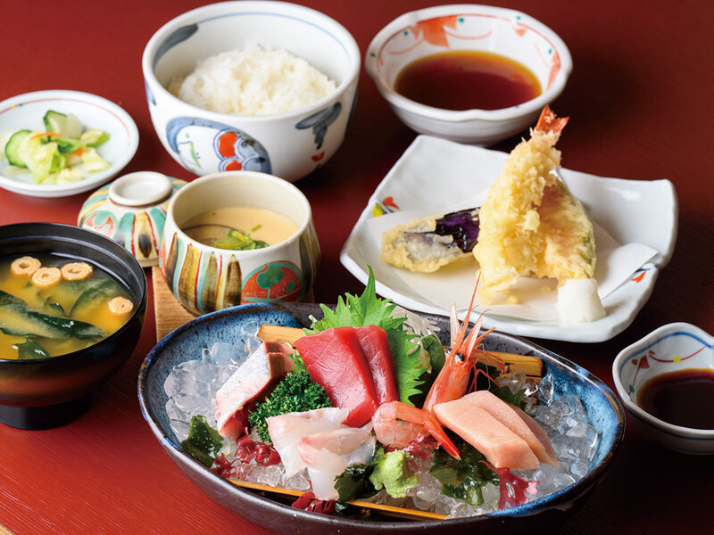 市場直送の新鮮な魚介を贅沢に盛り付けた刺身と、天ぷら、茶碗蒸しまでついた大満足のランチ御膳。他にも、すしランチやうな丼などがリーズナブルに楽しめる♪