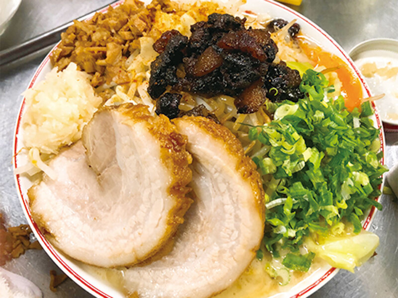 超極太麺・カネシ醤油・背脂が相性抜群! 特盛野菜や、規格外の巨大チャーシューなどインパクト大!!