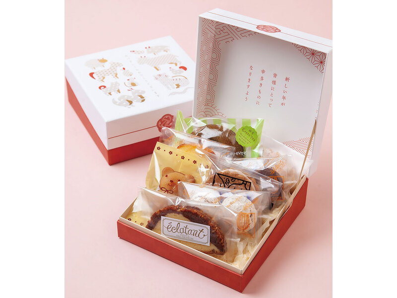 「玉手箱ギフト」や「梅つつみ」など、年始の手土産に最適なギフトをたくさん用意。年末年始も休まず営業しているのも心強い。年末年始は「エクラタン」のスイーツでハッピーなひとときを。