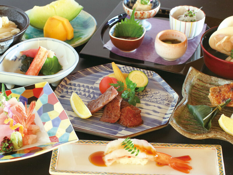 7/31(金)までの月〜金曜限定(祝日除く)特別ランチが夏バージョンで登場! 旬の魚や野菜を中心に50品目の食材を使った、目にも鮮やかな料理の数々が味わえる。各部屋より卯辰山の中腹からの金沢を一望でき、優雅なひと時が過ごせる。来店の際は必ず予約を。