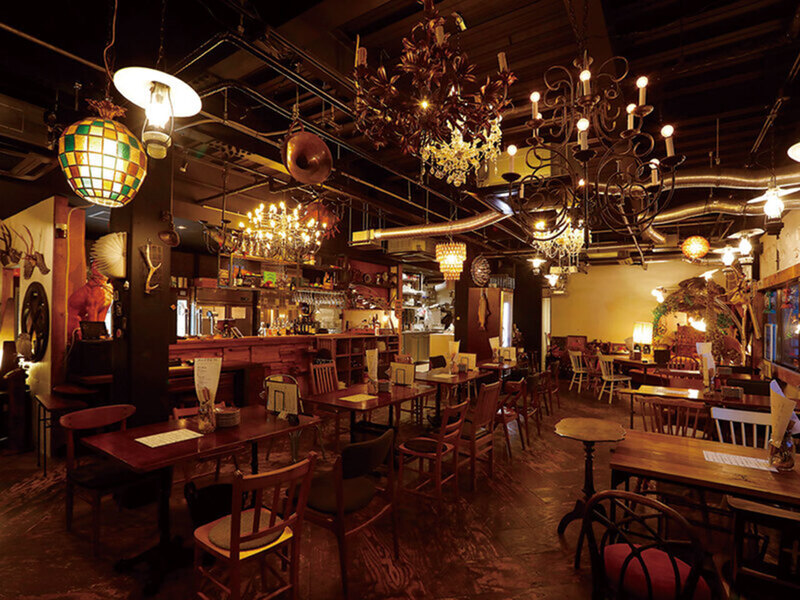 店内はランタンやおしゃれ雑貨が気分を盛り上げるレトロな空間。