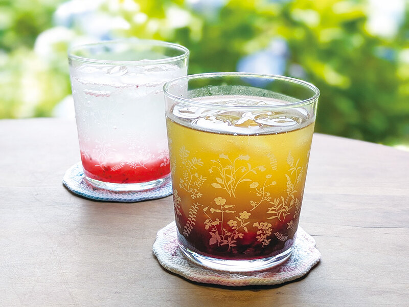 「フルーツソーダor ミルク( 550円 )」日替り自家製ドリンク。写真は、はちみつレモンベリーとゴールドキウイ。