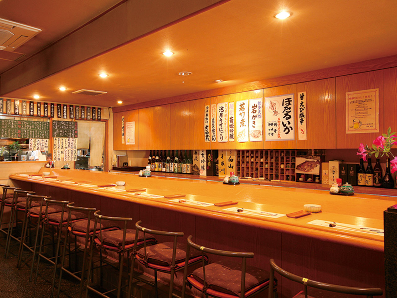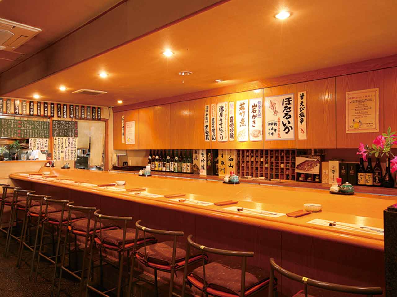地元客から観光客まで幅広く愛される名店。冬は加能ガニ、香箱ガニ、寒ブリ、白ガスエビ、白子、蓮蒸しなど旬
