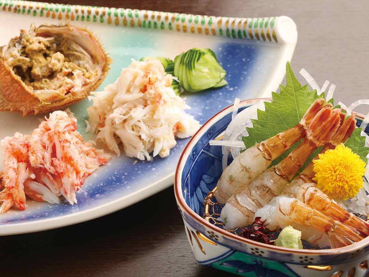 同店の代名詞でもある「カニ料理」。加能ガニ・香箱ガニは全て1匹単位で注文可。(加能は2人で1匹、香箱は人数分が目安)
