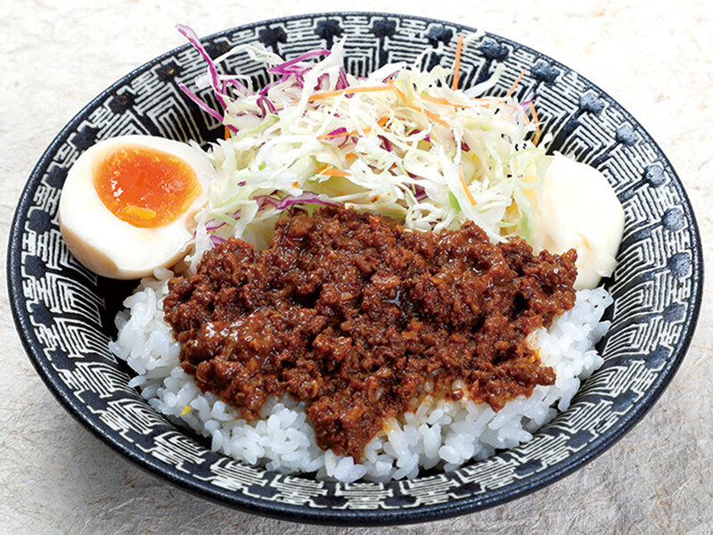 甘辛く炒めたそぼろ肉がごはんと相性抜群! 5月は麺類を注文した人限定で、380円で食べられる!!