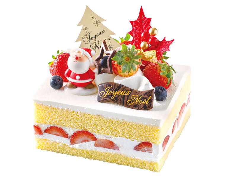 コクのある卵と純生クリームを使用し、しっとりとした上品で甘さ控えめな生クリームケーキ。今年はスクエアにデコレーション。