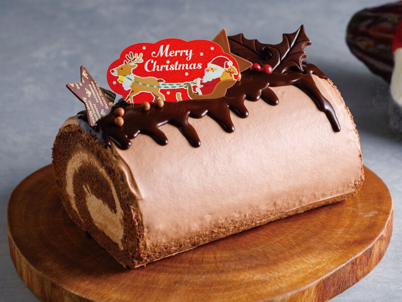 ビッシュ・ルーレ[14cm]3,456円。米粉のチョコレート生地を自家製チョコレートのムースで巻いて、クリスマスロールケーキに。予約12/19(木)まで。引渡は店頭。期間12/21(土)〜25(水)。