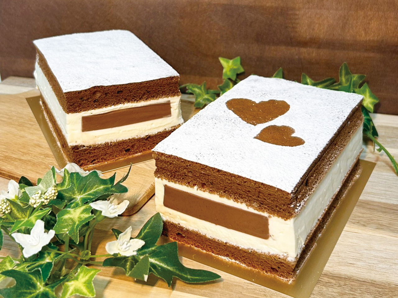 自慢の卵をたっぷり使ったふわふわのスポンジになめらかなチョコプリン、北海道産の上質な生クリームをサンド。看板商品の「プリンサンドケーキ」をチョコレート仕様に仕上げた。1/26〜2月末までの期間限定商品。