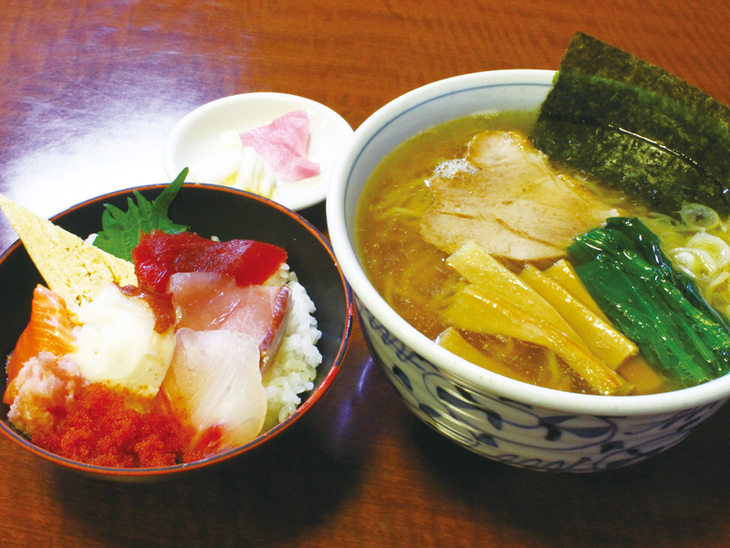 出汁をきかせた「町の蕎麦屋の中華そば」と海鮮丼のセットが人気!