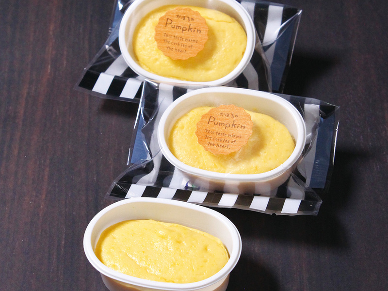 滑らかな舌触りの特製かぼちゃプリンに、栗・柿・いちじくと、チョコでできた魔女の帽子を飾った商品。黒猫の可愛らしい入れ物は陶器製で再利用◎。10/31までの期間限定商品。