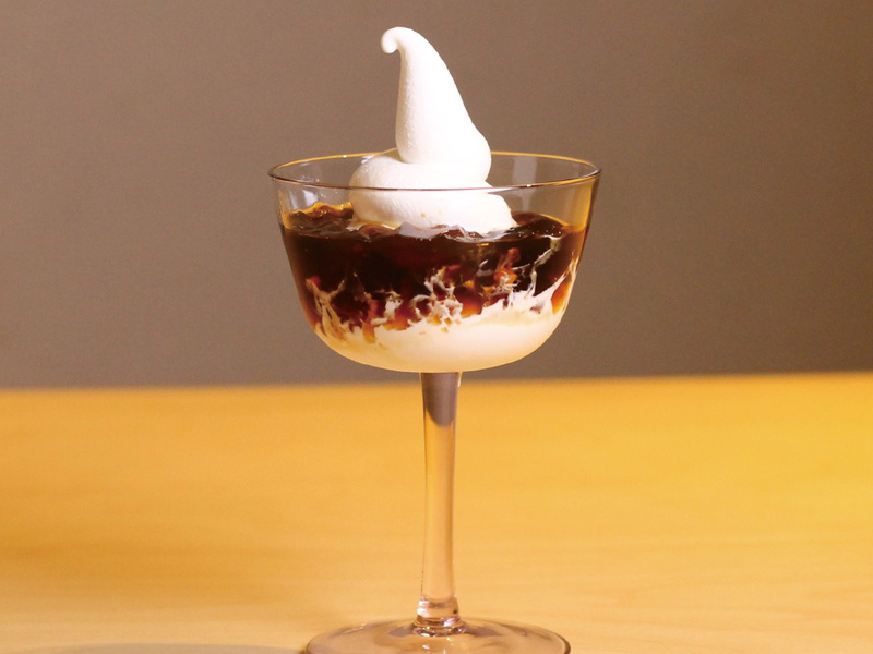 ジャージーソフトクリームに香り高い自家焙煎珈琲で作る珈琲ゼリー、ヘーゼルナッツが香る限定メニュー「コーヒーゼリーフロート」。単品750円、ミニスコーン付き1,000円。同商品含むソフトクリームの提供は12/28まで。