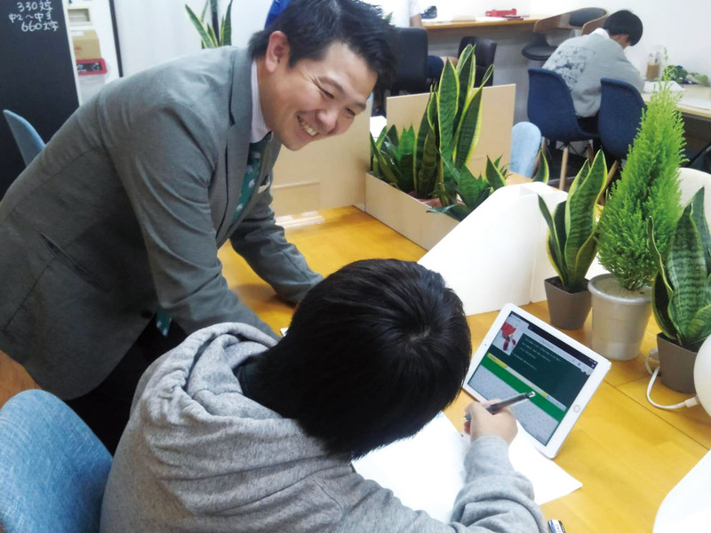 タブレットを使ったWEB学習システムで、一人ひとりの学習状況や弱点に合わせて学習プログラムを構成する。