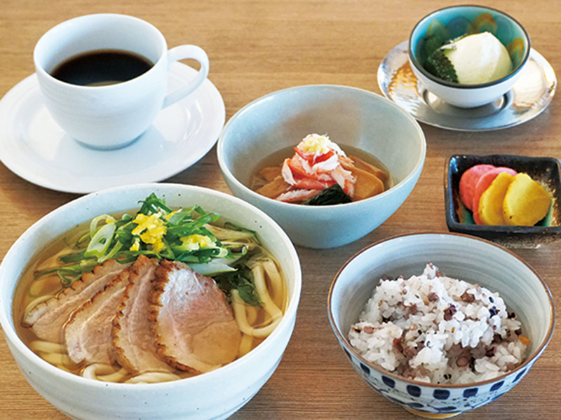 四季や時間で変わる景色を眺めながら、贅沢な時間を過ごせる。週替りのうどんorそばと温泉がセットの「温活ランチ&入浴セット(2,860円)」は雑穀米・小鉢・ジェラート・ドリンク付。「冬のあったか温活フェア」を開催中。身体の芯から温める豊富なメニューを用意。