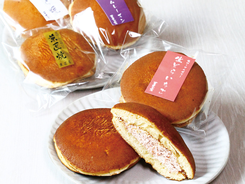 四季折々を和菓子で表現する、創業37年の名店。どら焼き「菓匠焼(230円)」は生地に生ローヤルゼリーを使い、しっとりなめらか。いちごの味わい豊かなクリームが絶品の、期間限定「生ドラいちご(300円)」もおすすめ。
