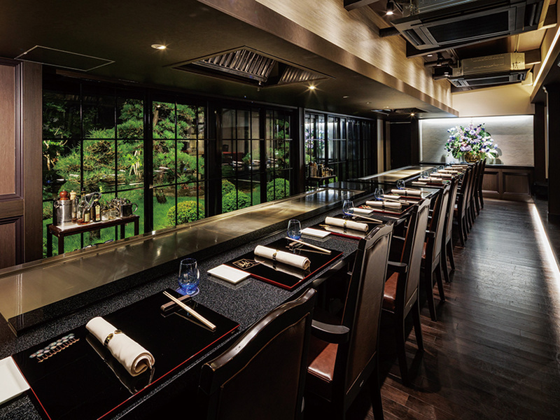 ホテル伝統のフレンチと、ゲストの目の前で焼き上げるダイナミックな鉄板焼の融合。指定牧場の厳選和牛や新鮮な魚介類、新潟の豊かな食材を贅沢に使用あオリジナルコースは、一皿ごとに驚きと感動を与えてくれる。日本庭園を臨む鉄板カウンター席のほか、特別感あふれる個室も用意。