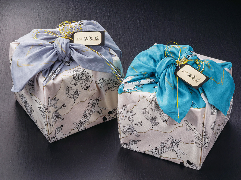 おせち料理を包む風呂敷のデザインは「鳥獣人物戯画」
