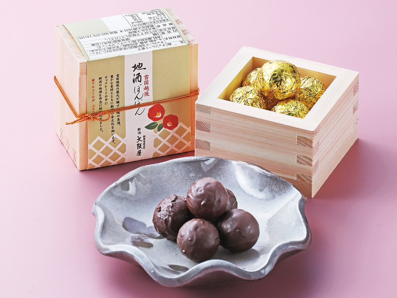 辛口の銘酒、玉川酒造「越後武士」をチョコに閉じ込めた逸品。アルコール度数23度、お酒好きな人への贈り物にぜひ。期間・数量限定。お日もち/常温12日