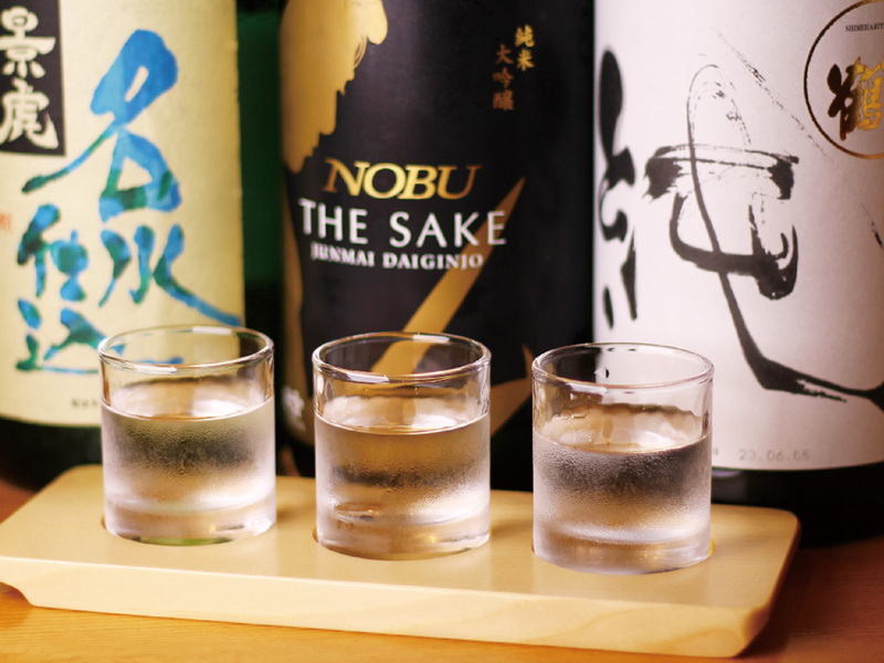 新潟のおすすめ地酒を厳選した「幸飲み(700円)」、純米吟醸メインの「蔵飲み(900円)」の2プラン。それぞれプラン内から好きな日本酒(冷酒・50ml)を3種選べる。蕎麦と一緒に味わおう。