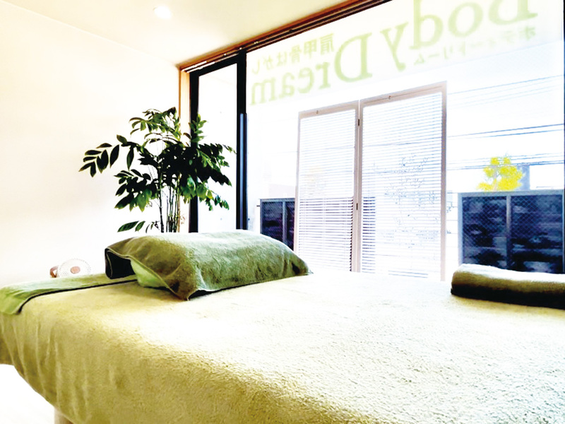 女性施術者は京都の有名アロマリンパマッサージサロン、整形外科での経験を経て独立開業。県内外で活躍中。完全貸切でペア同時施術も可能。